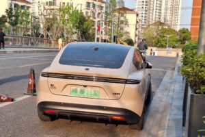 後ろ姿の車両は、おそらくポルシェタイカン似な、XiaomiのSU7だと思います。