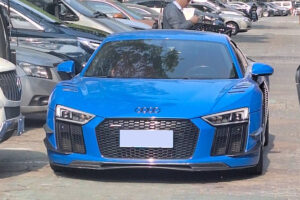 最後の青いのは、アウディTT-RS(ガソリン車)です。ナンバーは従来通りの青ナンバーでした。