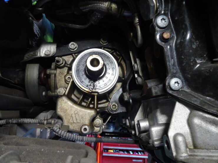 タービン外して、ご対面です。Bクラスは狭いのでもっと大変です サーモとの一体物?です こちらはシトロエンDS3のウォーターポンプ交換です