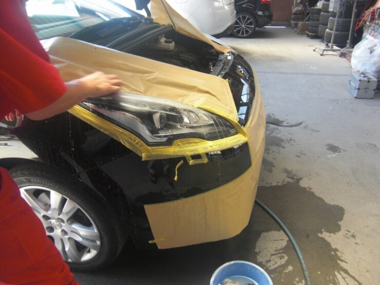 プジョーのライトクリーニングです。ペーパーで荒いのから細かいの迄磨いて磨いてクリアーを落としていきます これで出来栄えが変わります 今回登場がカーコンのコート剤。前は磨いてクリアーを塗っていたのですが