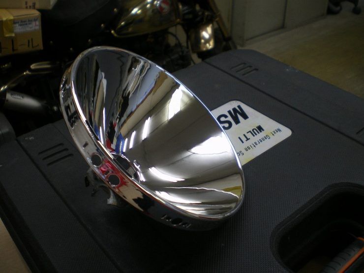 964も25年経って色々経年劣化他、ボッシュが手を引いてしまった為部品が高くなってしまいました。 前からやろうやろうと思ってた反射板の再メッキです。光度が足らなく車検が、、、、、から 始まりました。HIDを組
