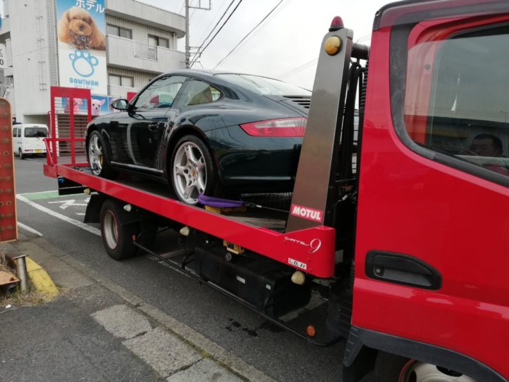 岡山ご納車です。4年前に販売した993下取りでご契約頂きました。 綺麗に磨いて、今回はご覧になって無いので慎重にご納車です 片道800KMは過ぎるかなー Rフェンダーに少し凹みが有ります。鈑